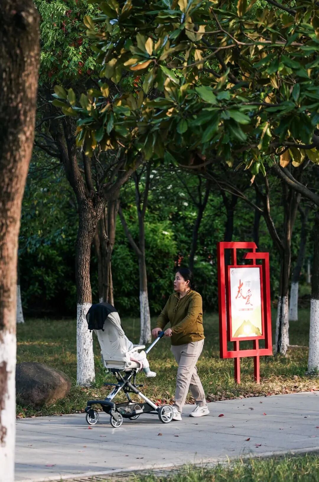 秋风送爽,盐城东方公园内水清岸绿、波光粼粼,时不时有飞鸟从湖面上掠过,步道上市民游人在悠闲散步,一派人与自然和谐共生的美丽景象。
