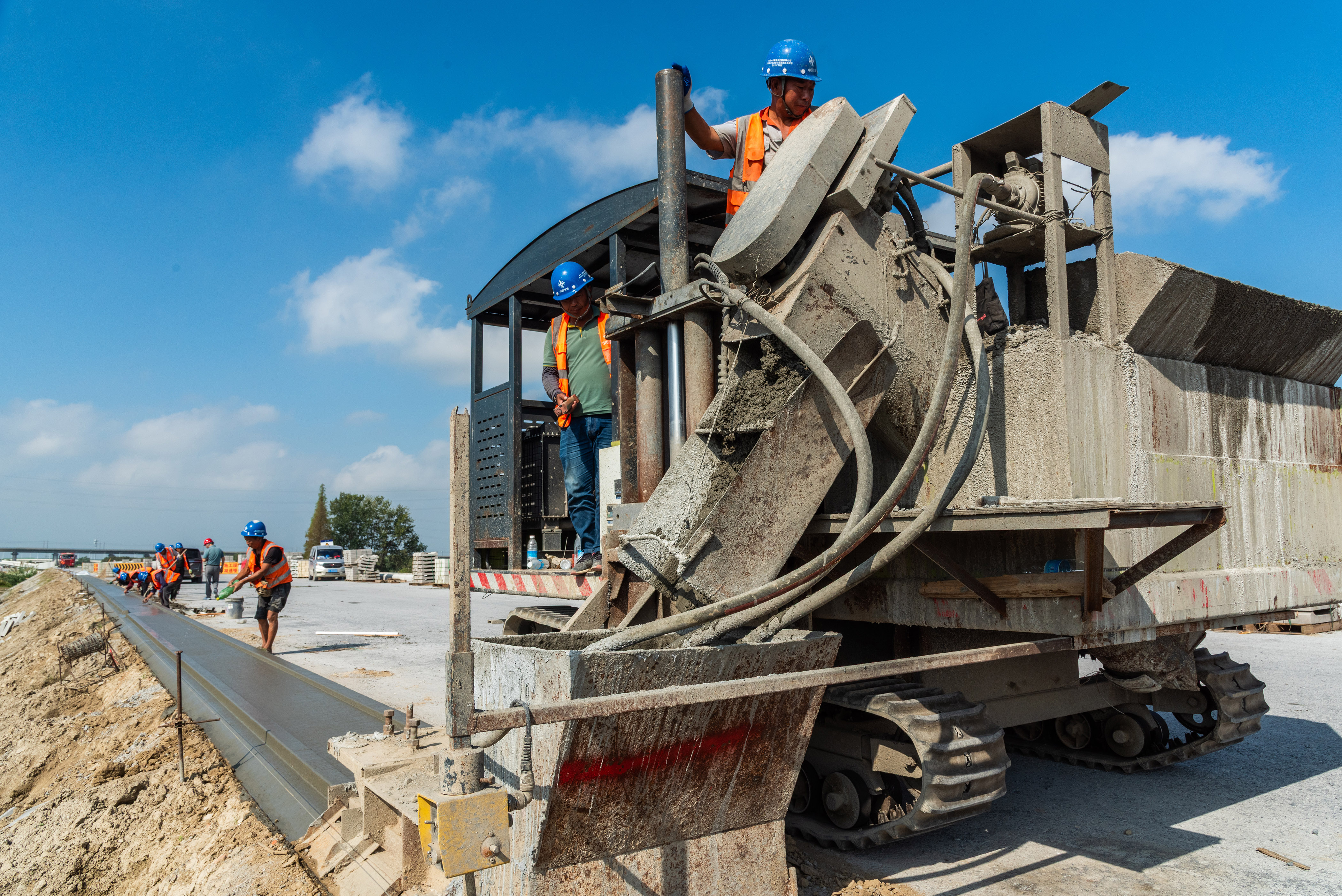 一场“静悄悄”工艺革命正在路肩施工部上演。传统的路肩被高效、精准的滑模施工新工艺取代,滑模机在两名操作员的控制下,沿着路肩匀速前进,线型顺直、结构密实的混凝土路肩就在身后一次性地连续成型,只需机后的工人稍作修饰,就成为漂亮的成品。这项工艺创新不仅大幅提升了施工效率,缩短了工期,更显著提高了路肩的实体质量和外观品质,达到了内实外光。