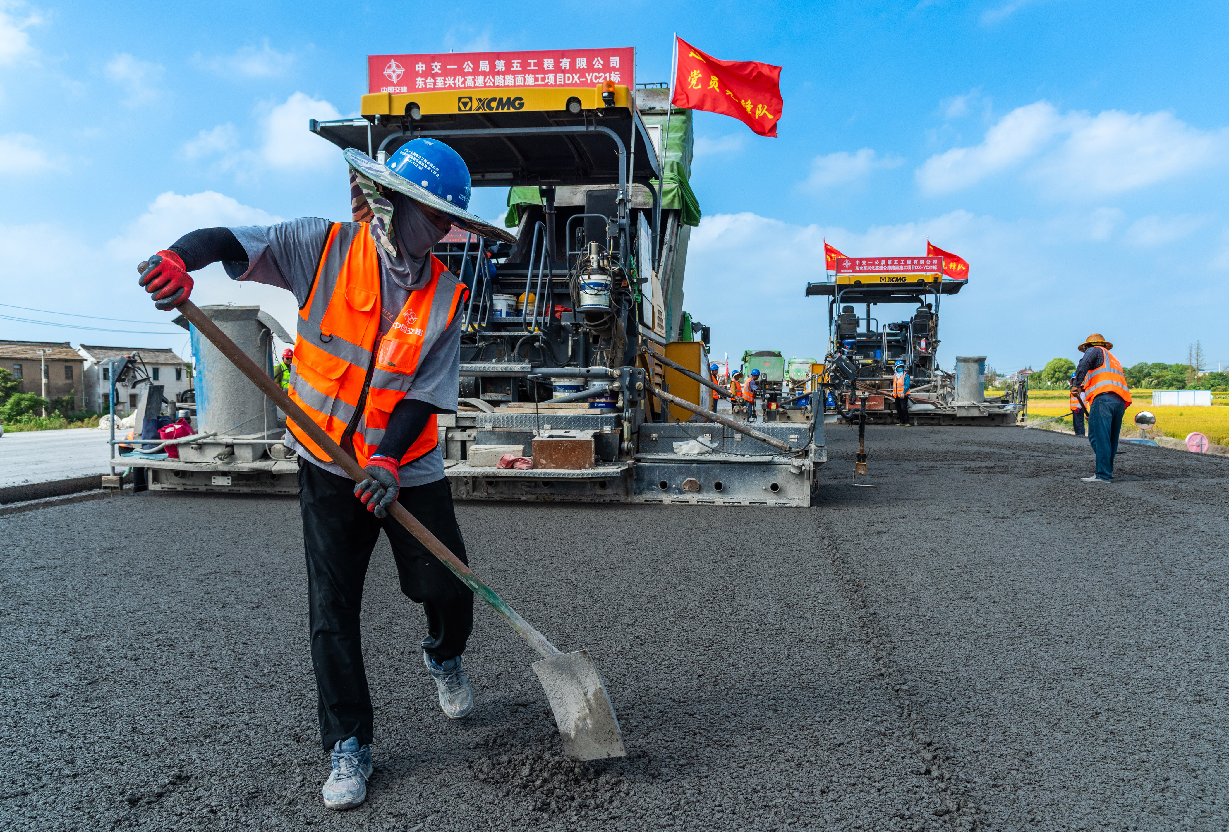 10月10日,秋高气爽,阳光遍洒,东兴高速东台段各施工作业点一片繁忙。当前正是工程施工建设黄金时节,建设者们以岗位为舞台,以汗水为笔墨,在广阔的工地上勾勒出一幅如火如荼、奋勇争先的动人画卷。他们不仅紧抓晴好天气,全力推进以水稳摊铺为重点的各分项工程施工,更创新工艺、开展技能竞赛,为打造品质工程奠定坚实基础。