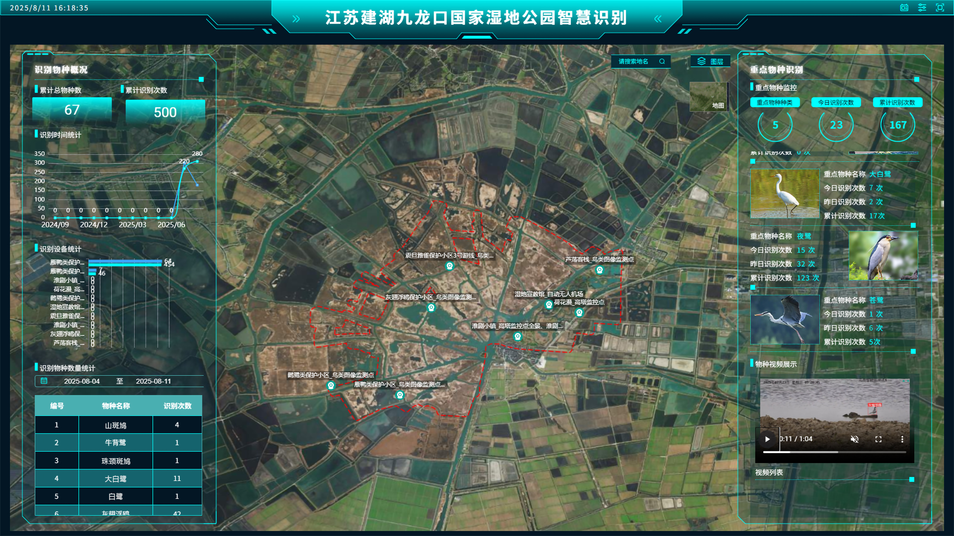 项目建成后,九龙口湿地实现了三大突破。在决策层面,通过“重要湿地监测与管理平台”整合多源监测数据,实现与国家、省级系统的无缝对接,为科学政策制定提供助力。在保护层面,依托多途径监控与智慧识别技术,全天候守护湿地免受人为干扰,构建“监测-预警-处置”闭环管理体系。在科研层面,通过长期监测数据积累,探索里下河典型沼泽湿地生态过程演变规律,为全省湿地修复提供可复制的“九龙口方案”。