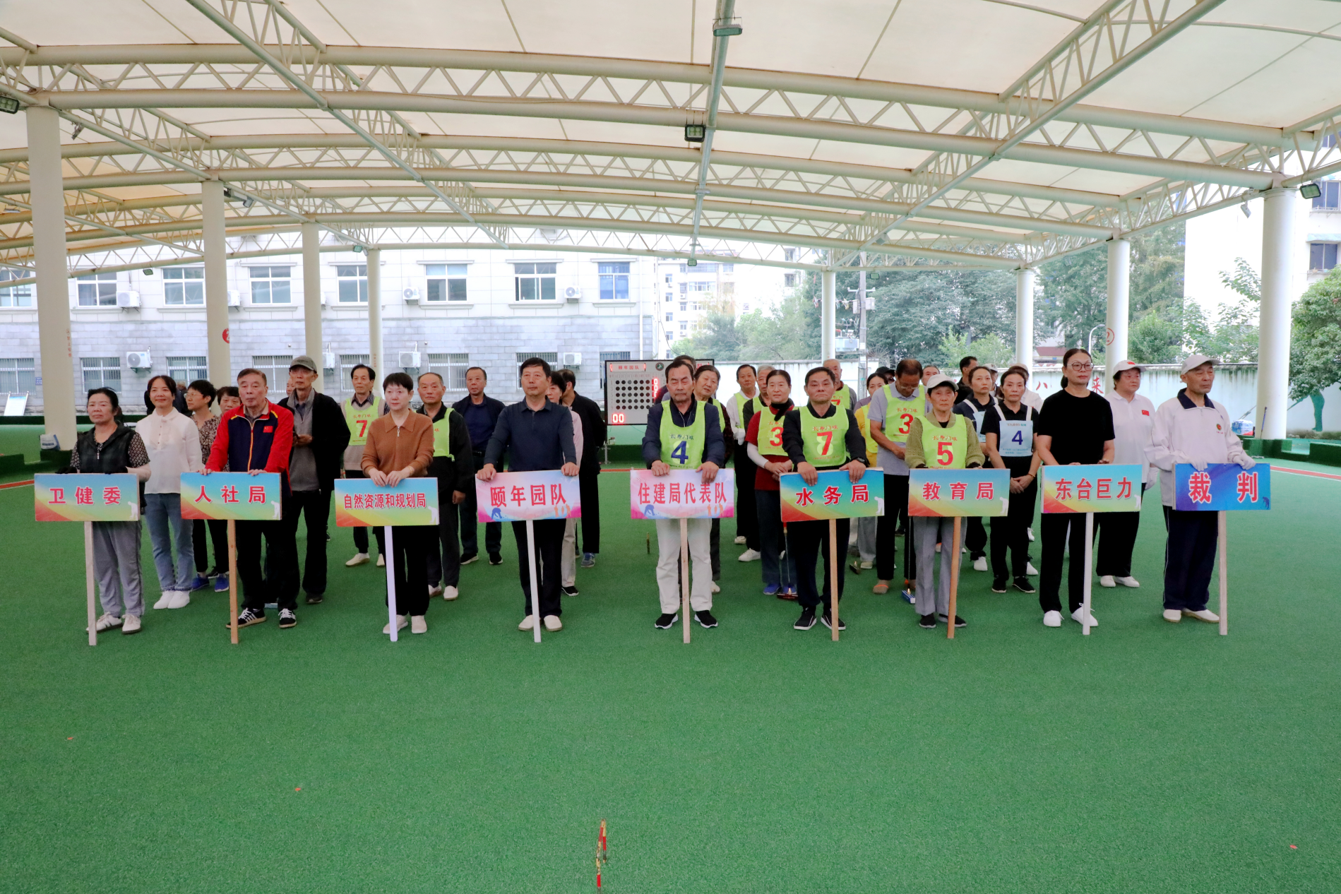 举办此次门球邀请赛,其目的是落实做好老干部工作、关爱老年人精神文化生活,展现东台住建系统及市直单位老同志们健康向上、老有所乐精神风貌,尽情享受老龄运动带来的快乐。上午八时许,开幕式在激昂的运动员进行曲中拉开帷幕。本次比赛得到了市直各相关单位的积极响应和大力支持,吸引了来自东台市住建局、自然资源局、人社局、教育局、卫建委、水务局、颐年园、巨力队等8支代表队,100多名离退休老同志参赛。