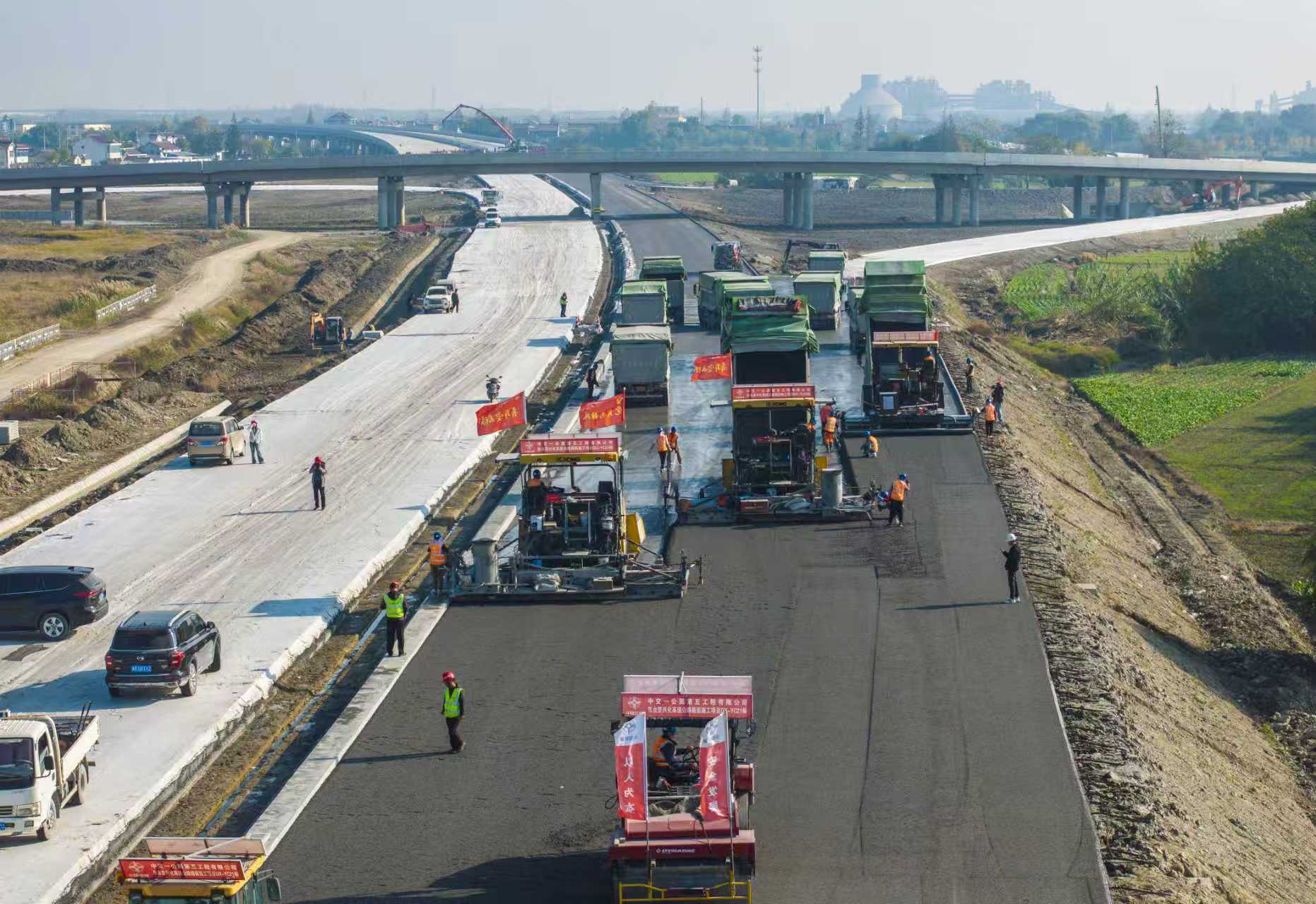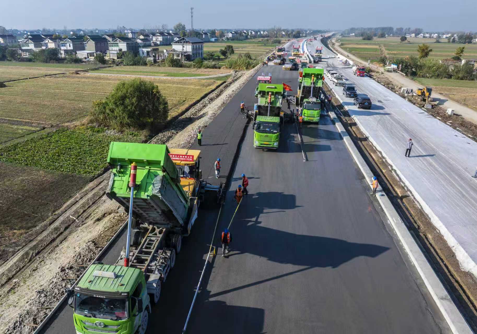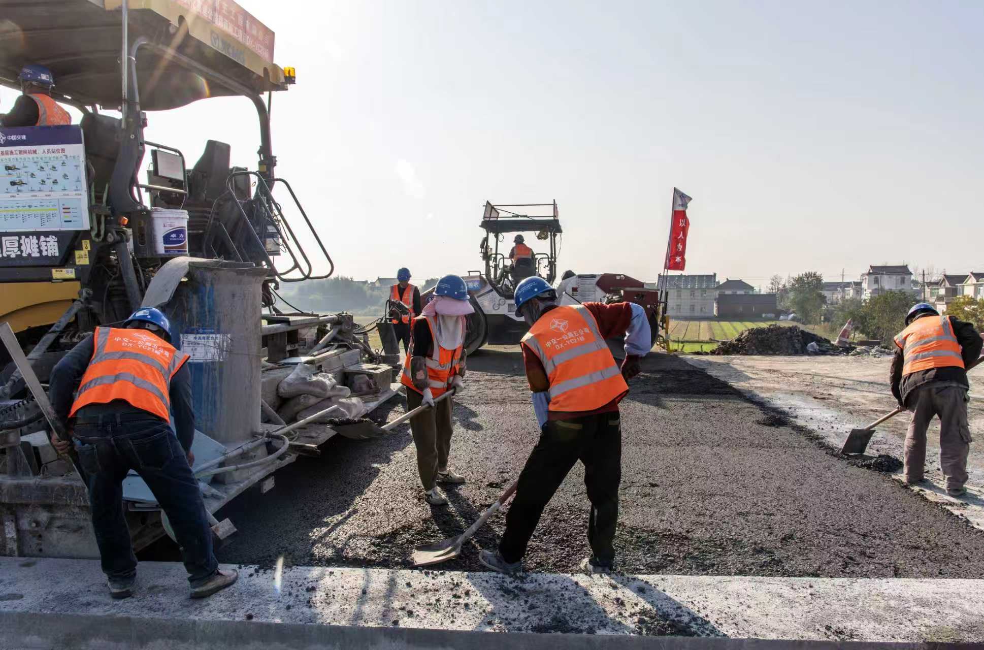 该项目主线全长24.6公里,水稳结构层包括18公分底基层、18公分下基层、18公分上基层,累计方量26.5万立方米。路面工程自4月底开工以来,面对工期紧、任务重,交叉作业面广、高温酷暑等困难,项目建设、施工、监理等单位精心组织、超前谋划,主动协调对接,路基符合条件一段,就安排检测、接收一段,见缝插针推进水稳结构层摊铺,确保了施工任务的如期完成!