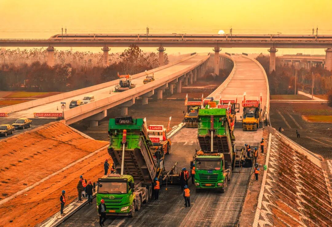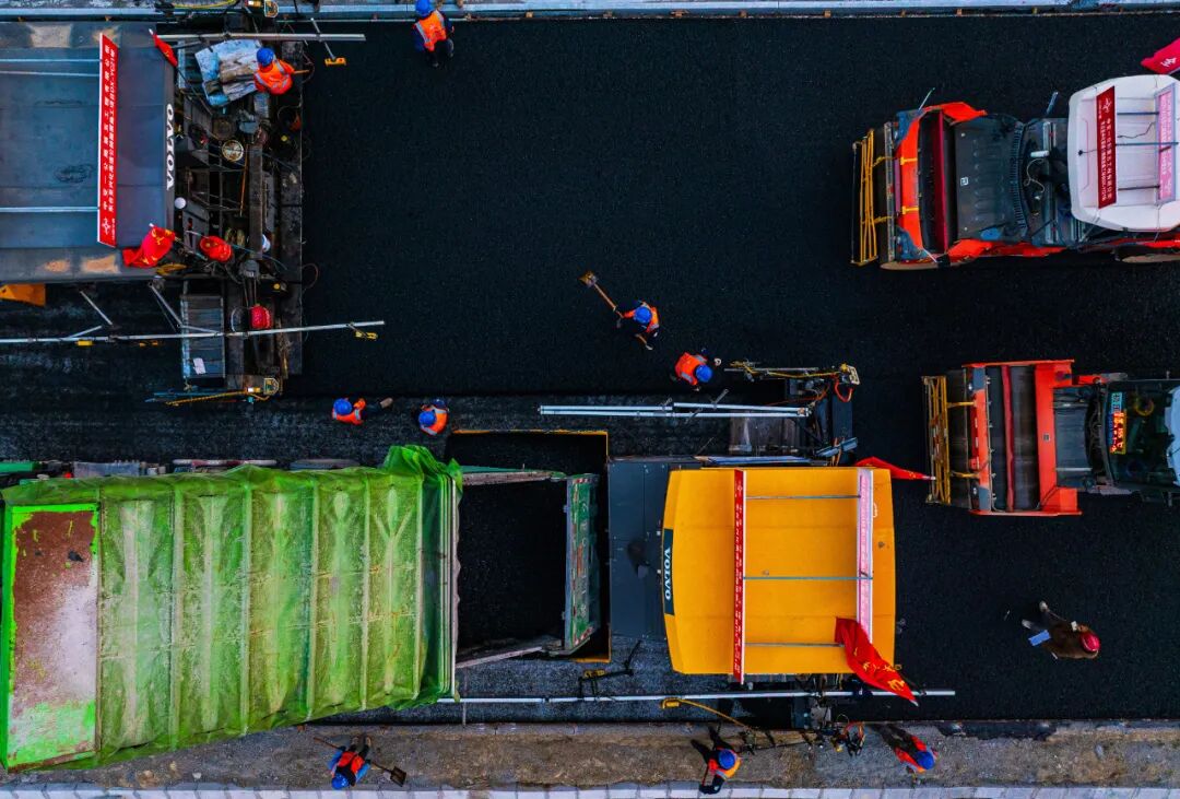 11月21日,东兴高速东台段沥青下面层摊铺现场,工人们抢抓当前晴好天气,加速推进项目施工,确保寒冬来临前基本完成年度施工计划。