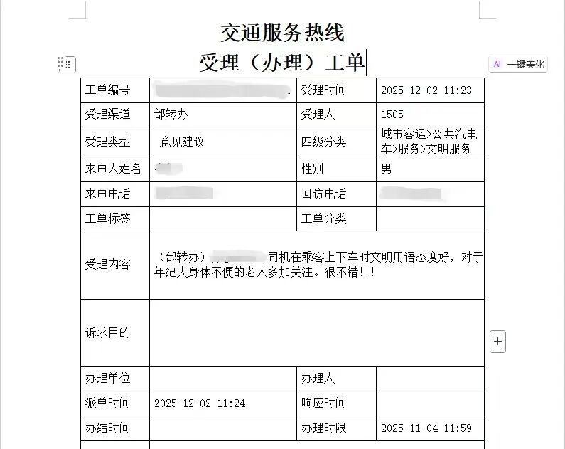 在日常服务中,驾驶员们对特殊群体的照顾尤为细致。B支5线驾驶员杭爱森在乘客上下车时,对老人及行动不便者总是格外耐心、主动帮扶,其亲切态度获得了市民韦先生的专门表扬。这些看似微小的举动,恰恰体现了公共服务中不可或缺的人文关怀与尊重,让车厢充满了人情味。