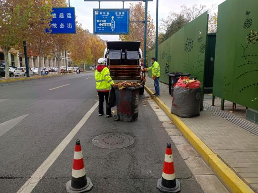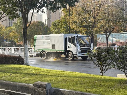科技赋能,提升清扫“高效率”。此次整治行动中,机械化作业成为清扫主力。在城区主干道上,大型洗扫车、洒水车、高压清洗车、落叶收集车组成“清扫梯队”,沿道路有序作业,洗扫车滚刷将落叶收拢,吸盘同步完成落叶收集,全程无扬尘、效率突出;针对背街小巷、人行道等机械作业不便的区域,环卫工人配备轻便清扫工具,采取“扫、收、运”一体化作业,确保落叶不堆积、不滞留。据统计,专项行动启动以来,日均出动作业人员480余人次、各类作业车辆25余台次,日均清理落叶约20吨。