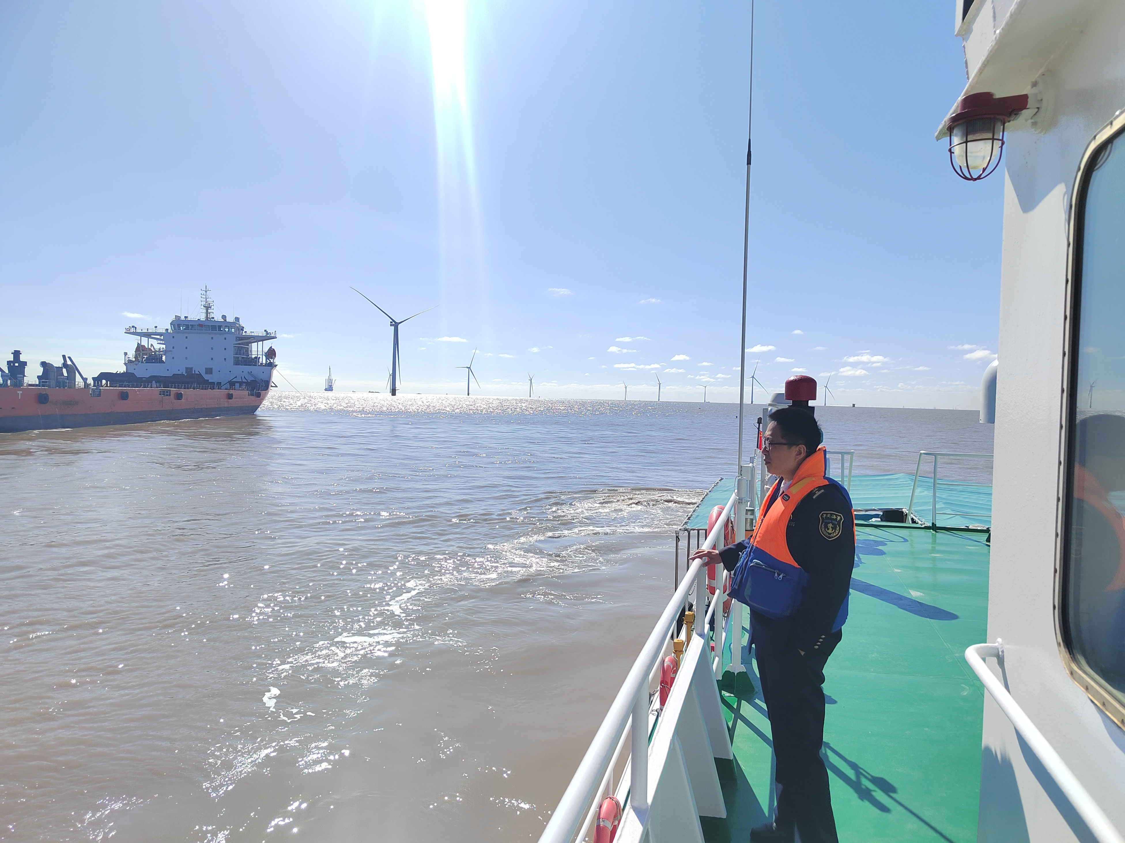 全程监管,全方位护航。针对项目离岸距离远、施工船机多、运输航线长等特点,构建“智能监控+现场巡查”立体化监管体系,创新探索“船舶点验与无人机巡航”立体监管模式,严格执行“一船一核查”制度,实现监管无死角。