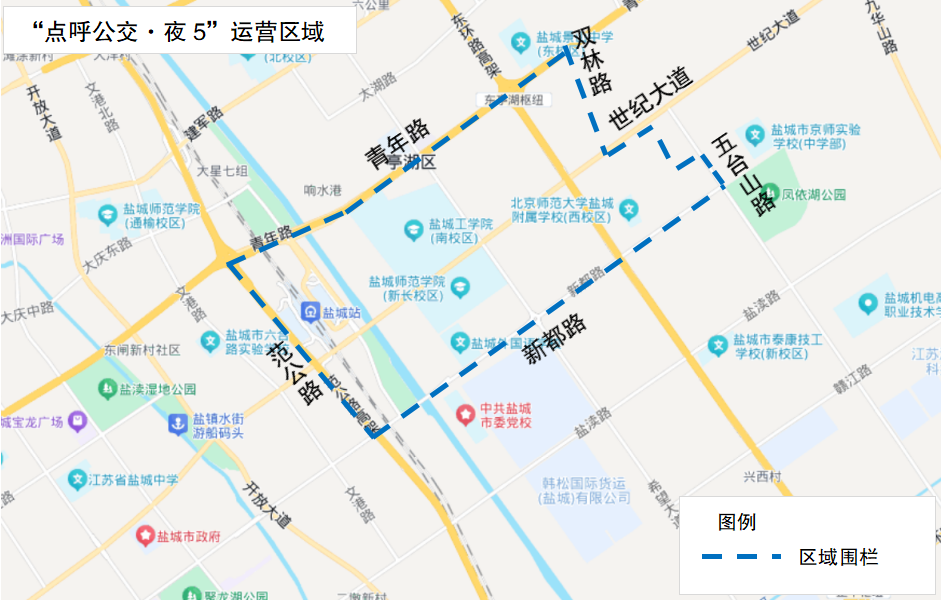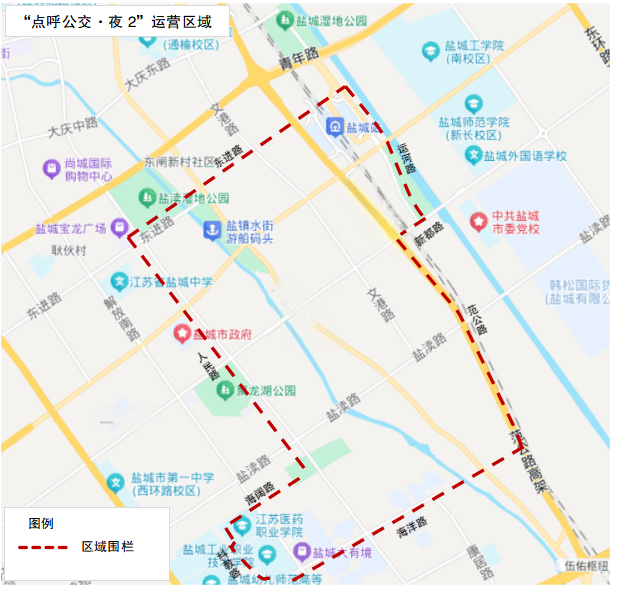 服务区域:以东进路、人民路、海阔路、科教路、海洋路、范公路、新都路、运河路的合围区域。取消原固定班次。