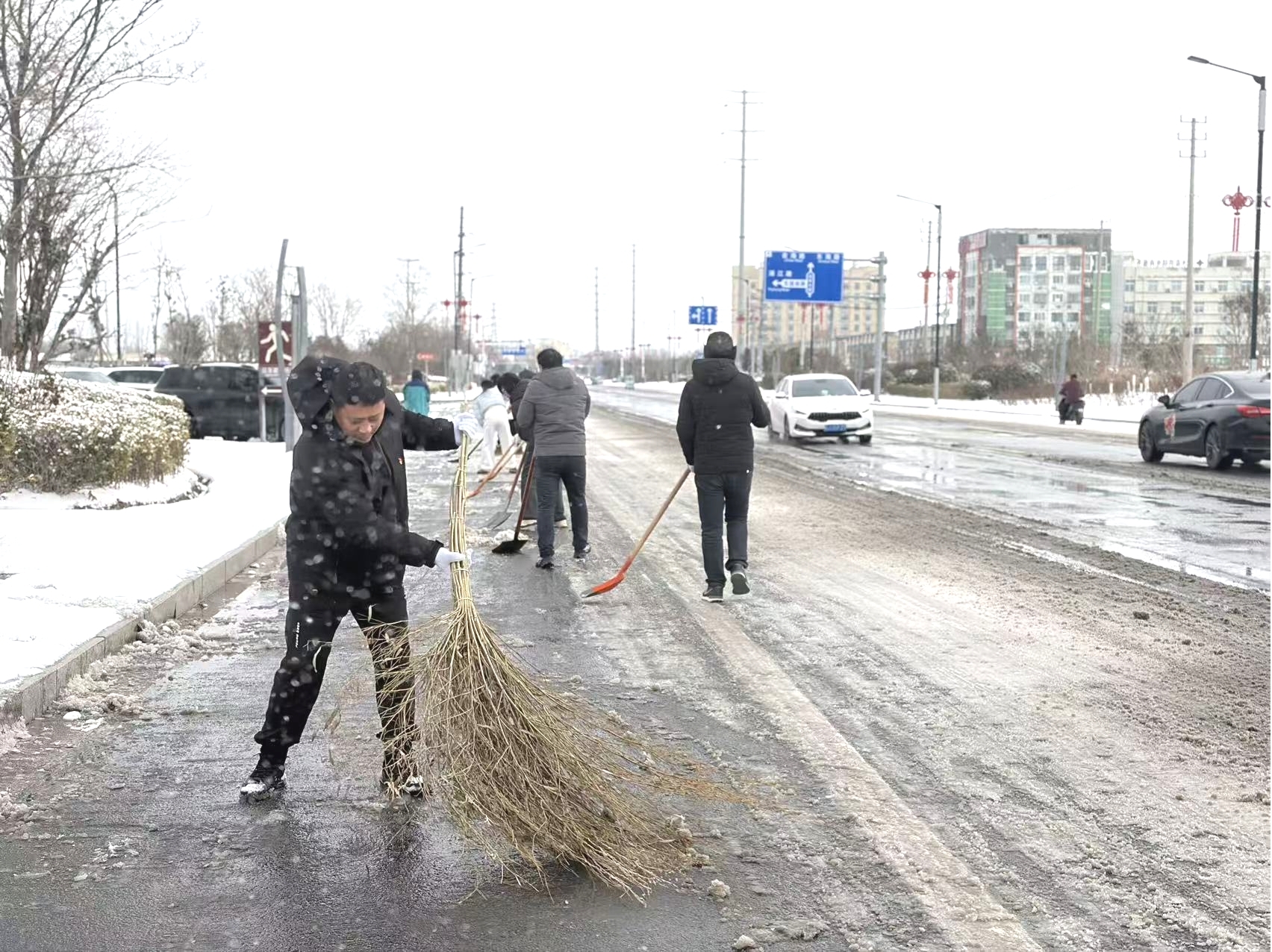 1月20日上午,该局党员干部职工迅速集结,携带铲雪工具,奔赴县城黄河路北侧(黄海路—东园街)、迎宾大道路段,对该路段非机动车道及小道板开展除雪作业。行动中,大家分工协作、默契配合,党员干部冲锋在前,不畏严寒,挥动铁锹、扫帚,对路面积雪冰层进行集中清理,用实际行动践行“我为群众办实事”的初心使命。经过数小时连续奋战,相关区域路面冰雪基本清除,为群众安全出行提供了有力保障。