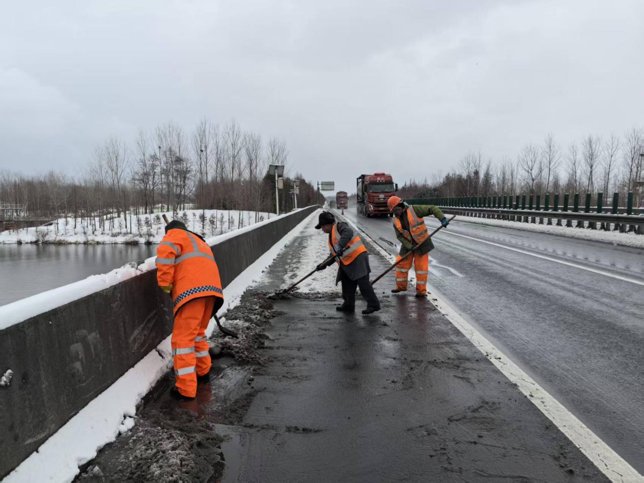 寒夜坚守,彰显公路“担当色”。风雪夜,气温骤降至零下,寒风如刀割般刮过脸颊,却挡不住公路人的坚守脚步。全体作业人员顶风雪、冒严寒,始终坚守在扫雪除冰一线,以“机械为主、人工为辅”的作业模式,连夜不间断开展巡查与除冰作业,用忙碌的身影温暖了寒夜归途。截至20日上午,累计撒布融雪剂58吨、工业盐122吨,完成辖区重点路段积雪清理及除冰作业,最大限度降低了降雪对公路交通的影响,及时消除各类安全隐患,确保了全区路网通行安全有序。