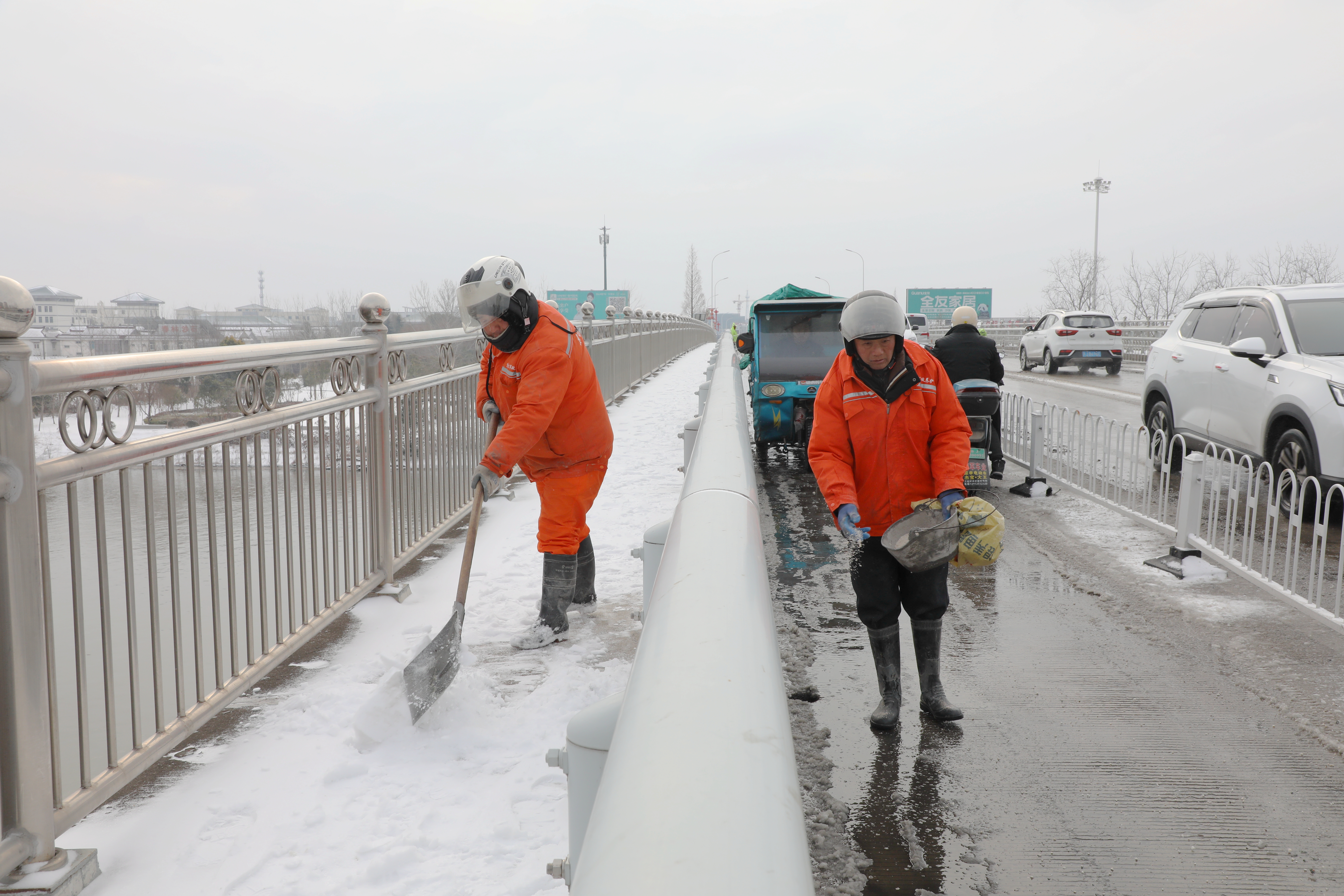 雪不停,人不歇。东台市市政养护管理所提前备足物资,全员上阵。按照“先桥梁、后道路,先坡道、后平路”的顺序,在范公大桥、北海大桥等坡度较大路段连续开展清雪除冰作业,同步喷洒融雪防滑剂及工业用盐,有效防止路面结冰,确保道路畅通。