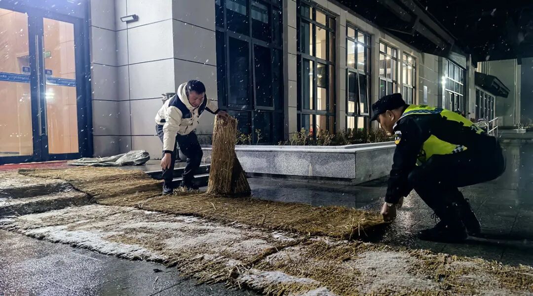 大雪降临,绿阳集团交投物业的“雪天守护者”们迅速出动。从夜色深沉到晨光熹微,工作人员的身影始终穿梭在风雪中。