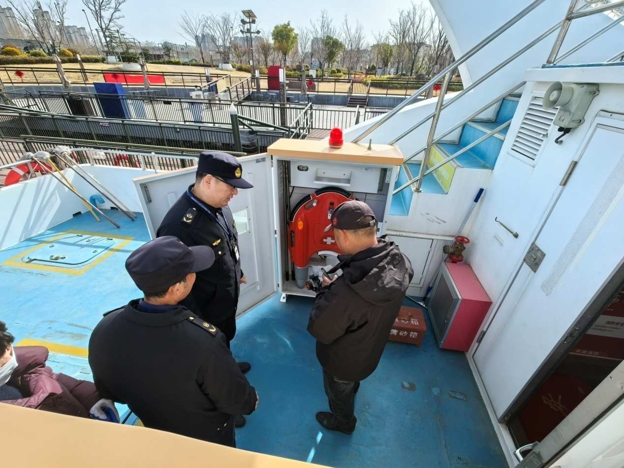 科技的力量固然强大,但传统的现场监管同样不可或缺。春节期间,在充分利用“智慧天眼”的同时,支队每日还安排执法人员深入各水上游览点进行现场抽查。特别是在游客高峰时段,执法人员主动靠前,协助夜游船企业维持码头乘船秩序,引导游客有序上下船,提醒穿戴好救生衣,确保现场秩序井然。