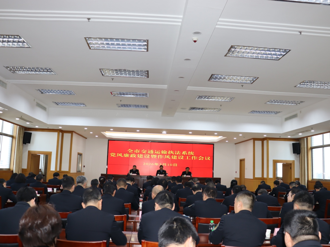 会议强调,“十四五”的五年,全市交通运输综合执法工作许多亮点经验值得推广;2025年,行业发展稳中有进,“高质量”特色更加鲜明。2026年是中国共产党成立105周年,是“十五五”开局之年,做好党风廉政建设暨作风建设工作意义重大。全市交通运输执法系统必须以政治建设为统领,坚定不移落实重大决策部署;以思想建设先导,持之以恒夯实为民执法精神根基;以组织建设为重点,精密打造坚强有力战斗堡垒;以作风建设为抓手,久久为功涵养为民务实清廉正气;以纪律建设为保障,持续锤炼交通执法铁军队伍;要拿出严谨务实的作风、风清气正的行风,为交通运输事业高质量发展提供坚强执法保障。