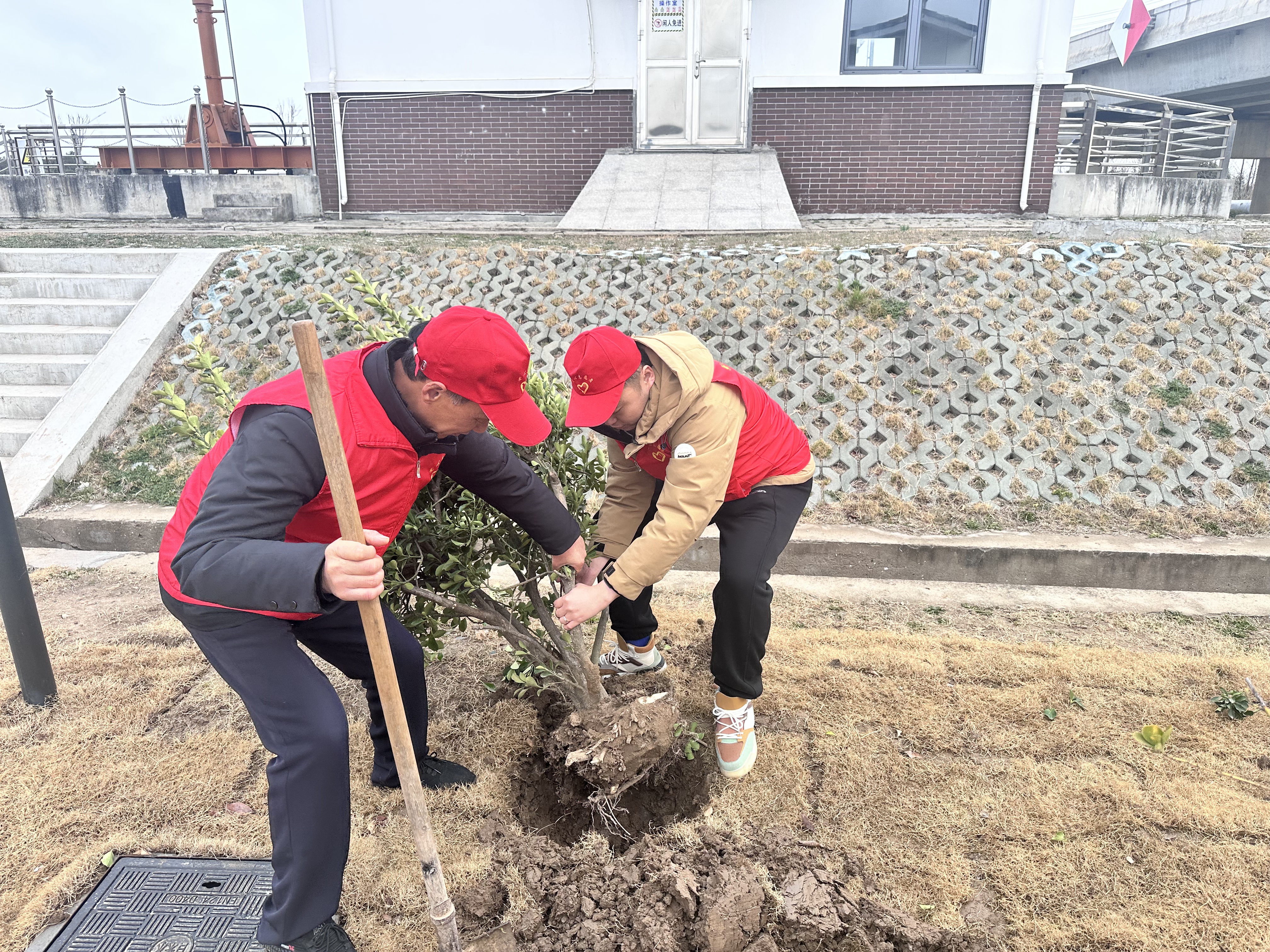 活动现场,志愿者热情高涨、干劲十足,携带铁锹、水桶等工具,早早来到植树区域,有的挥锹铲土,有的扶苗正树,有的培土浇水,清澈的水流缓缓渗透土壤,滋润着每一颗充满希望的种子。春风略带凉意,但大家额头渗出的汗珠却闪耀着劳动的热情,经过一上午的辛勤劳作,一片新栽的树苗在船闸旁的空地上迎风摇曳,展现出勃勃生机,为春日的船闸增添了一抹亮丽的绿色。