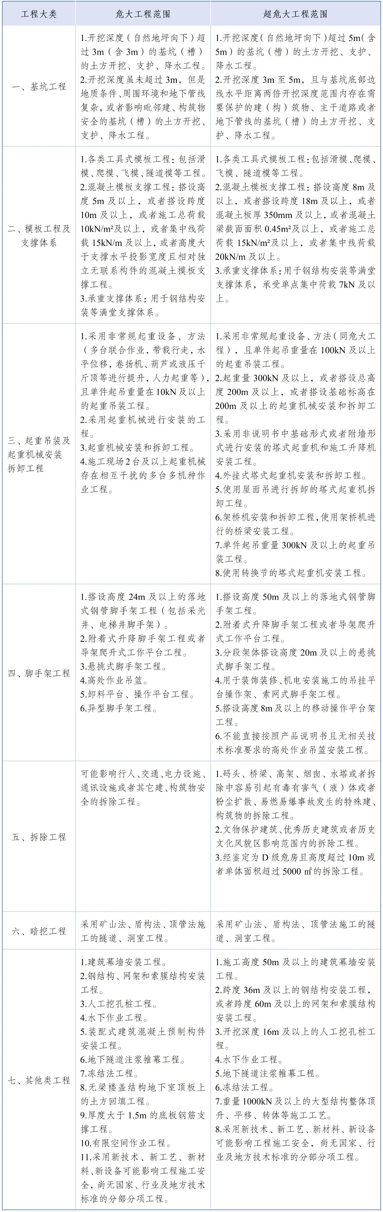 根据江苏省最新监管要求,全市房屋市政工程危大工程范围包含以下7大类专项工程,所有项目必须对照清单全面辨识,不得漏项、缺项。凡纳入超危大范围的工程,未履行专家论证程序的,一律不得开工。
