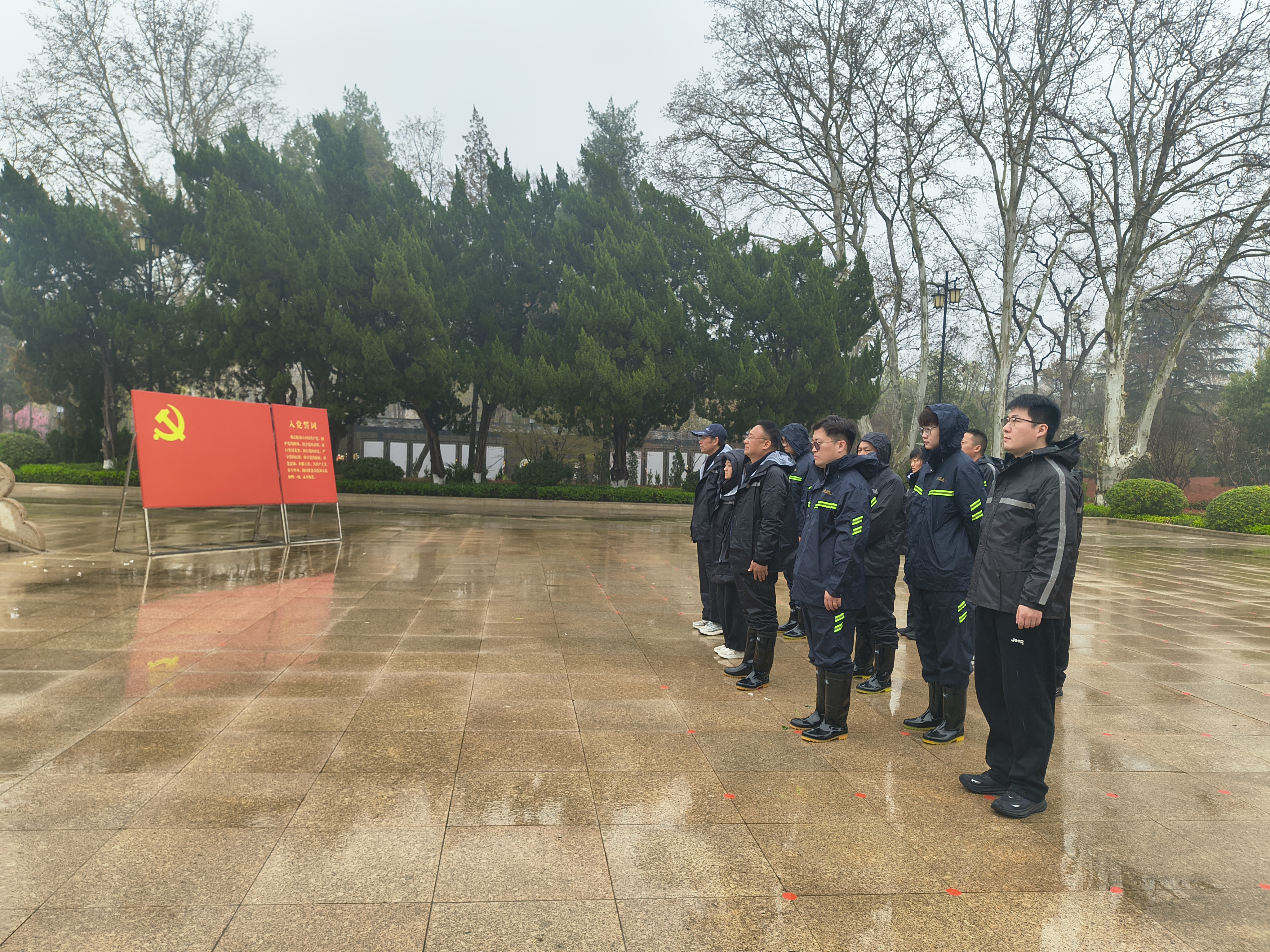 上午9时,烈士陵园内庄严肃穆。全体人员整齐列队于革命英雄纪念碑前,祭扫仪式在雄壮的国歌声中拉开序幕。国歌唱毕,全体同志肃立默哀,向革命先烈致以深切哀悼。在《献花曲》的深情旋律中,党员代表敬献花篮,党支部书记上前整理缎带。随后,全体党员面向党旗重温入党誓词,铿锵誓言在陵园上空久久回荡。