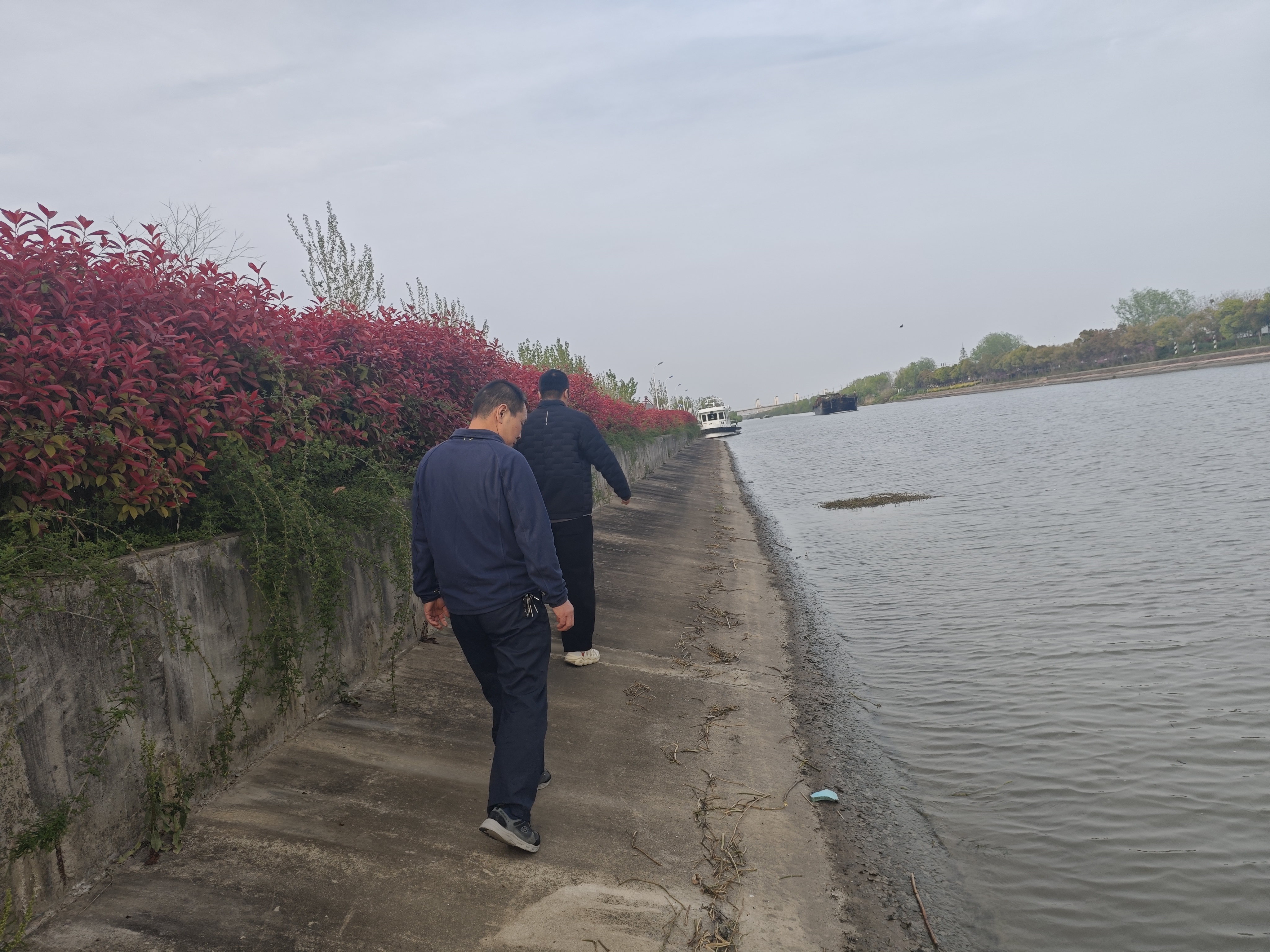 此次巡查由船闸主要领导全程带队,联合工程养护、运行调度等核心部门业务骨干组成专项小组,乘工作艇沿上下游引航道(护坡)、闸室、靠船段等关键区域开展“拉网式”踏勘。巡查聚焦水工建筑物结构稳定性、防汛设施完好性等核心重点,逐段检查护坡砌石是否松动、闸室墙身有无裂缝、靠船墩基础是否受冲刷,实现“从水面到岸坡、从主体到附属”的全域覆盖,确保隐患“早发现、早记录、早处置”。