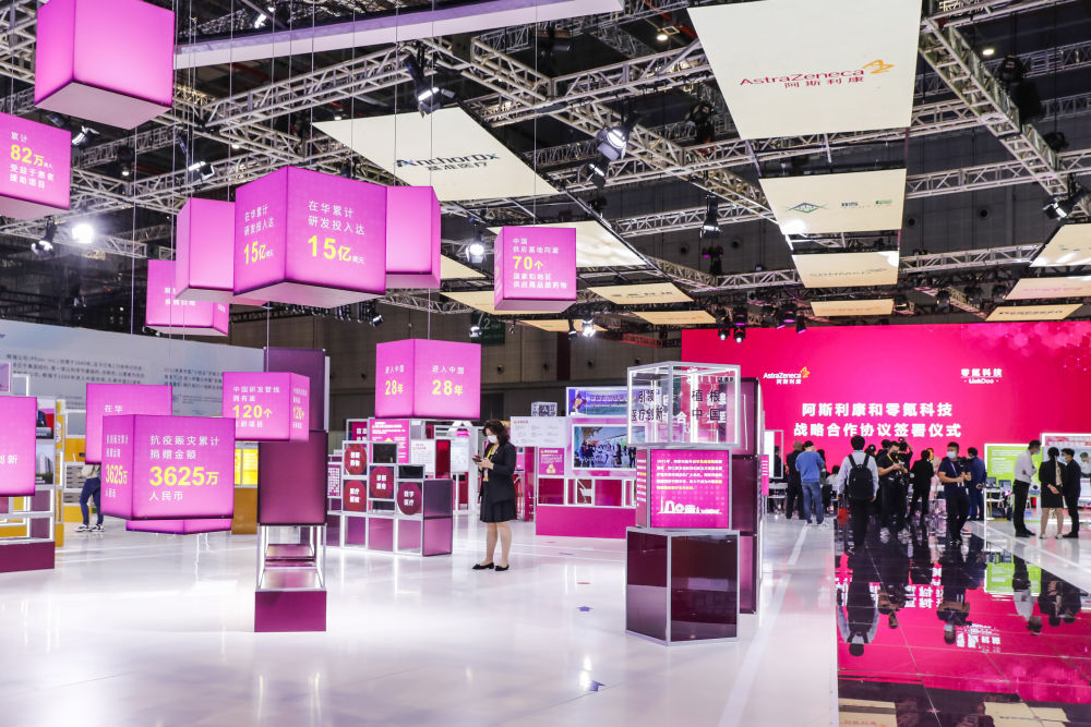 2021年11月7日,在第四届中国国际进口博览会医疗器械及医药保健展区的阿斯利康展台。新华社记者 张玉薇 摄