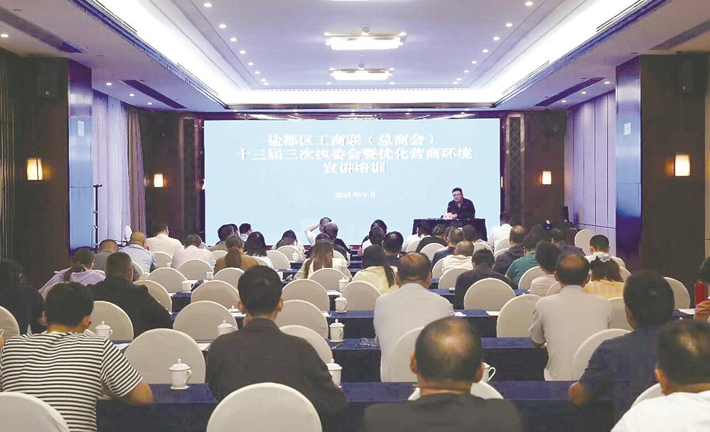 盐城晚报讯 近日,盐都法院干警受邀为盐都区工商联(总商会)十三届三次执委会参会人员开展商事商会调解专题培训。