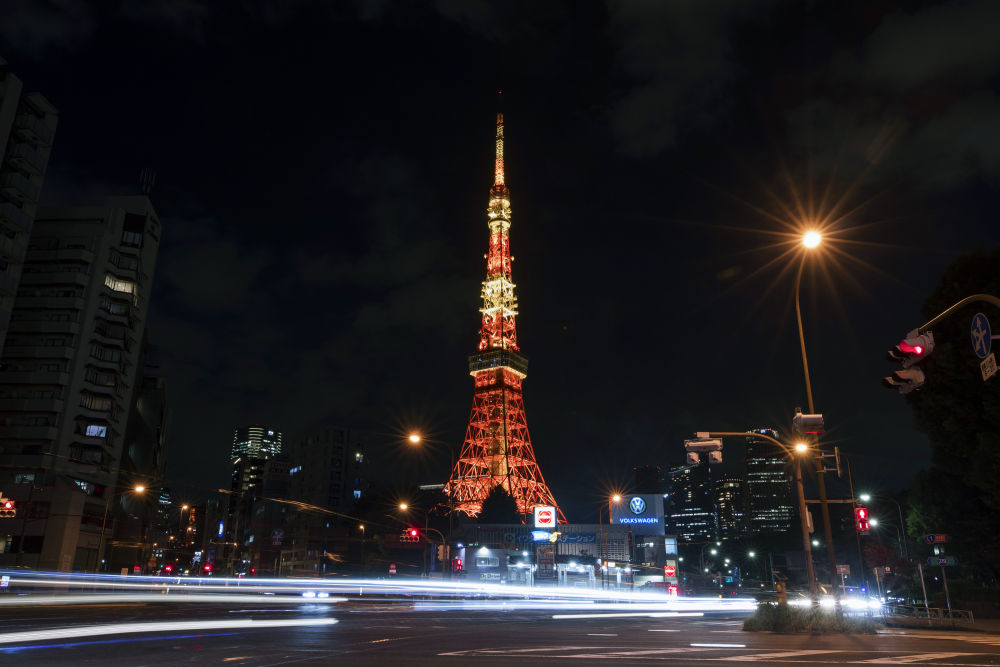 这是2020年11月10日在日本东京拍摄的东京塔夜景。(新华社记者杜潇逸摄)