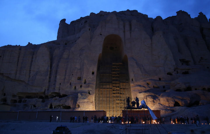 3月9日,阿富汗巴米扬大佛被毁20周年之际,当地民众发起活动,用3D投影的方式在原址重现佛像。阿齐米摄