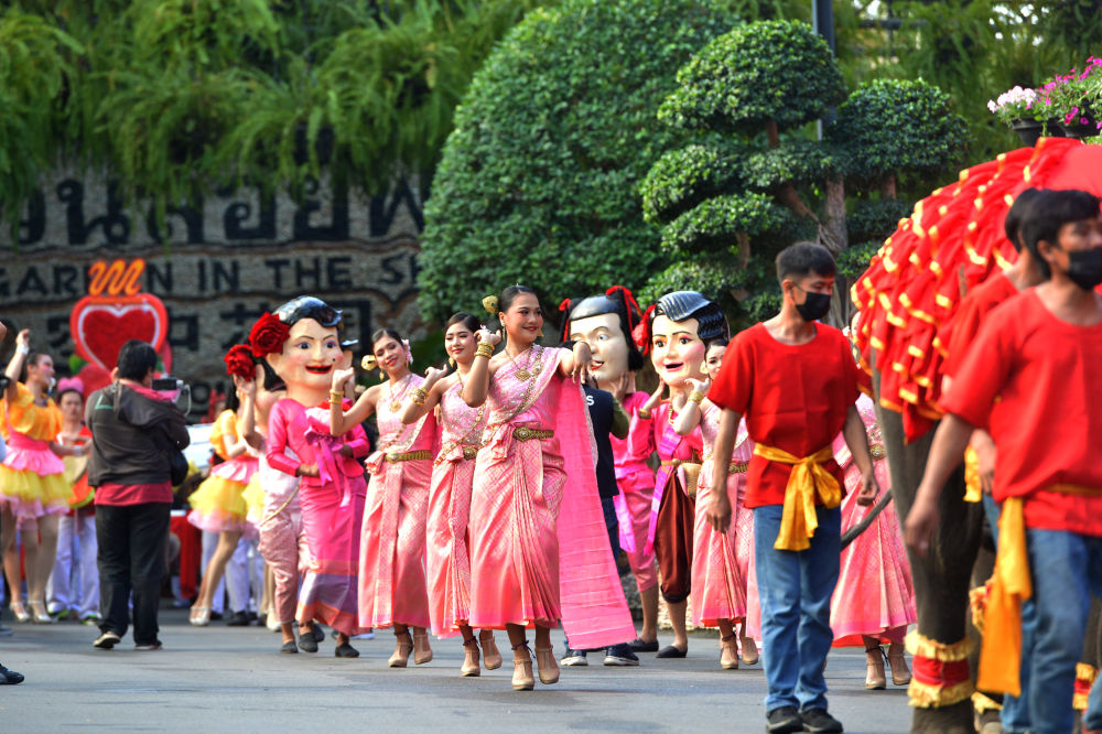↑2月14日,在泰国芭提雅东芭乐园,演员在婚礼上表演。