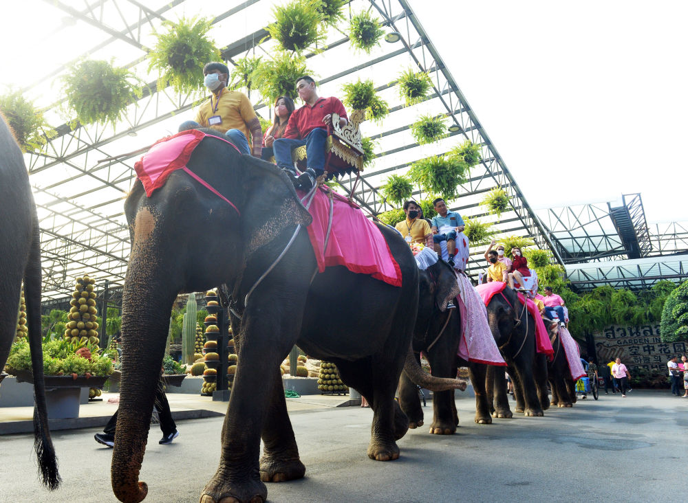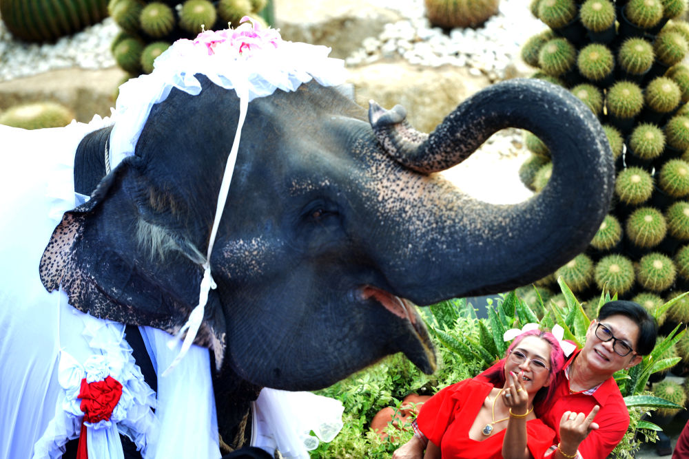 情人节当天,泰国芭提雅东芭乐园为新人举行了一场“象背上的婚礼”,祝福新人喜结良缘。