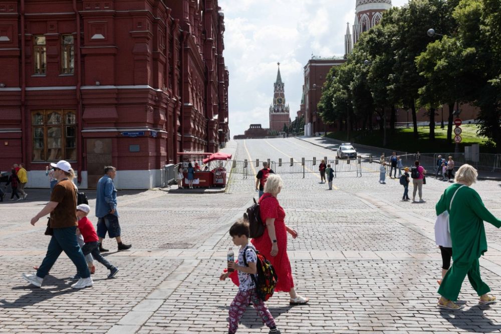 6月26日,在俄罗斯首都莫斯科,人们从红场附近走过。新华社记者白雪骐摄