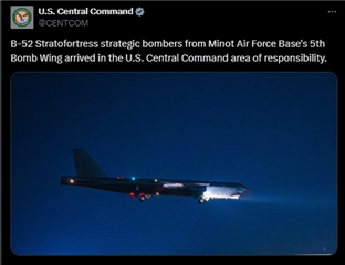 “来自迈诺特空军基地第五轰炸机联队的B-52战略轰炸机已抵达美国中央司令部责任区。”美国中央司令部当地时间11月2日通过社交媒体平台发布上述内容。