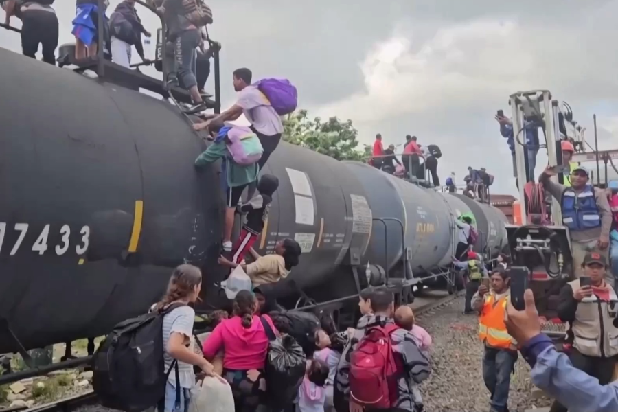 特朗普的一系列政策计划使大批移民不得不铤而走险,趁着其正式就任前“扒火车”前往美墨边境入境美国。近日,数百名来自哥伦比亚、委内瑞拉等国家的移民在墨西哥南部登上一列货运列车,前往美国与墨西哥边境。在长时间徒步跋涉后,移民希望通过“搭便车”获得休息,但曾有移民从火车上摔下以致受伤或死亡。