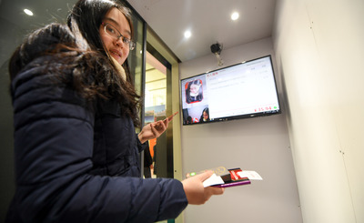 1月18日,顾客通过人脸识别技术结账付款。当日,京东无人超市在天津生态城开张纳客,成为京东在华北地区首批社会化运营的无人超市。超市面积约170平方米,有食品、饮料、日用百货等800多种商品,通过利用物联网、人工智能、生物识别等多项技术,帮助顾客实现全程自助无人购物。 新华社记者白禹摄