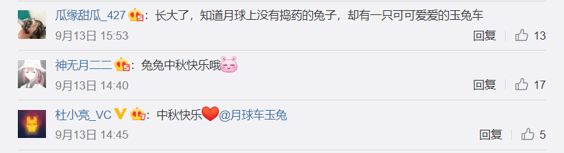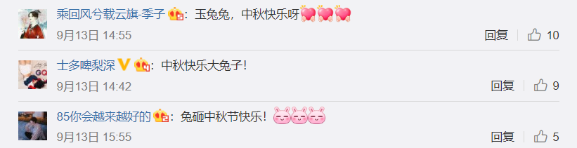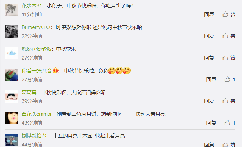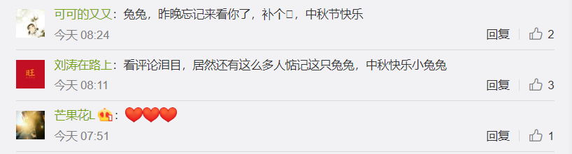 网友们在微博下纷纷留言祝福兔兔中秋快乐↓↓