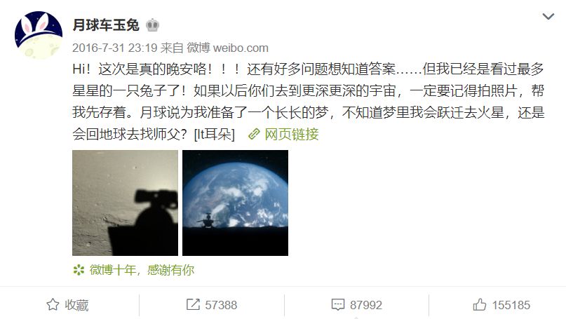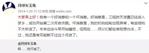 后来,“玉兔”又更新了一条微博,说是机构控制出现了问题。