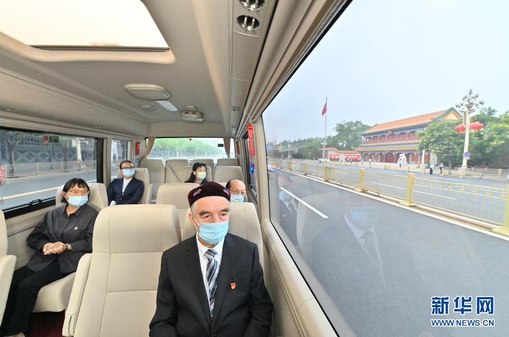 6月29日,庆祝中国共产党成立100周年“七一勋章”颁授仪式在北京人民大会堂金色大厅隆重举行。这是“七一勋章”获得者买买提江·吾买尔(前)、张桂梅(左一)、吴天一(右一)乘坐礼宾车前往人民大会堂。新华社记者 岳月伟 摄