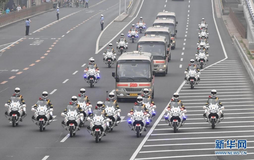 6月29日,庆祝中国共产党成立100周年“七一勋章”颁授仪式在北京人民大会堂金色大厅隆重举行。这是“七一勋章”获得者集体乘坐礼宾车,由国宾护卫队护卫前往人民大会堂。新华社记者 翟健岚 摄