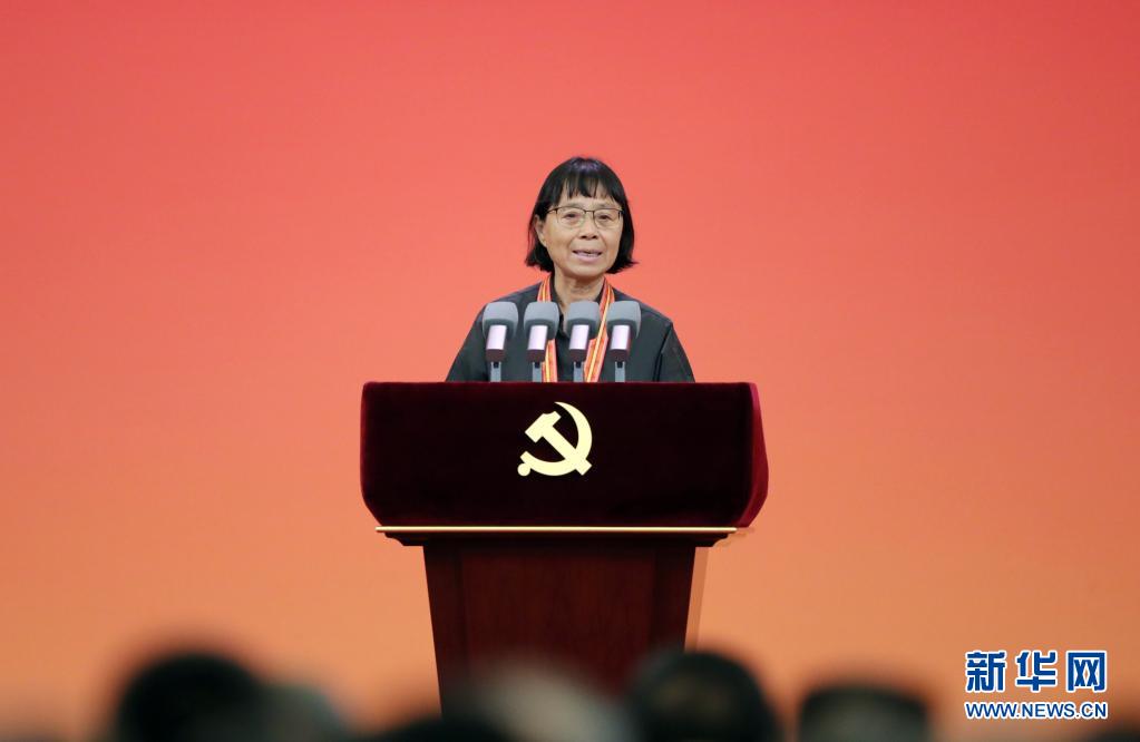 6月29日,庆祝中国共产党成立100周年“七一勋章”颁授仪式在北京人民大会堂金色大厅隆重举行。这是仪式上,云南省丽江华坪女子高级中学党支部书记、校长张桂梅代表“七一勋章”获得者发言。新华社记者 姚大伟 摄