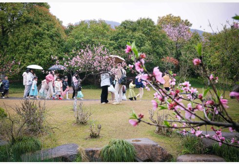 3月25日,游客在杭州皋亭山景区千桃园游园赏花。当日,第十届皋亭观桃节正式启动,游客在杭州皋亭山景区千桃园游玩、逛市集,感受春色。近年来,当地大力改善村容村貌,连续多年开展春日赏花游园活动,助力乡村文旅融合。 新华社记者 江汉 摄