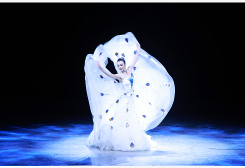 4月22日,演员在公众开放日上为观众表演孔雀舞。当日, “请你跟我一起来”中央民族歌舞团2023年公众开放日活动在北京举行。本次公众开放日以“春”为主题,面向社会公众发出邀请,近距离感受艺术精品的独特魅力,倾听台前幕后的感人故事,以文化人、以艺通心。 新华社记者 潘旭 摄