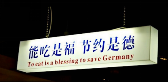 “去吃是一种拯救德国的福气”?翻译还贴心地给德国英文表达的首字母大写了。