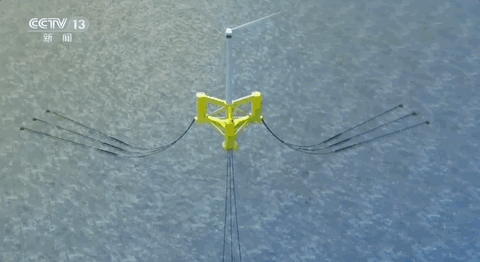 “海油观澜号”是我国第一个工作海域距离海岸线100公里以上,水深超过100米的浮式风电平台。它整体高度超200米,吃水总重达11000吨,通过9根锚链系泊固定在水深120米的海洋深处。