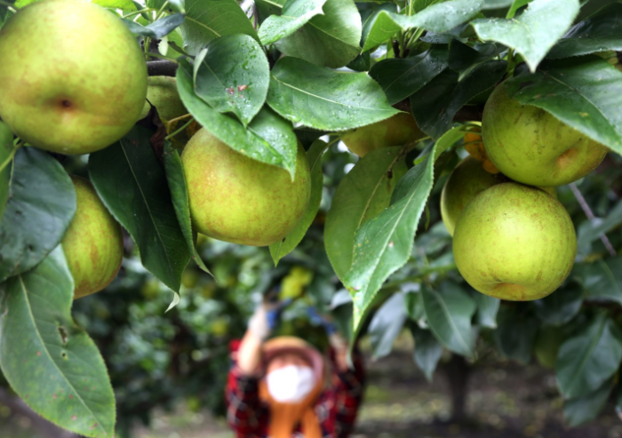 夏日连云港市朝阳街道西庄村,农民在果园中忙碌。王春 摄 视觉江苏网供图