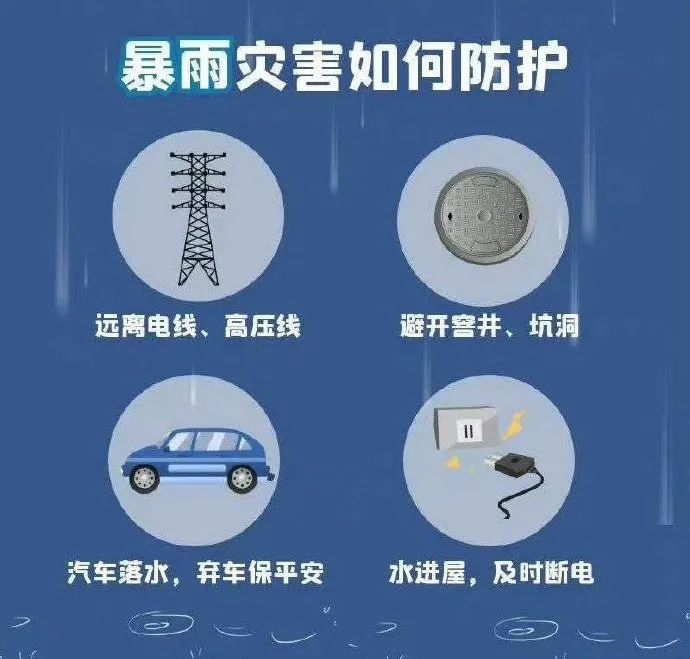 暴雨天气下,驾车时要降低车速,保持距离,打开防雾灯。驾车出行要确保刹车、转向、雨刷等部件安全有效,遇到积水较深的路段,不要贸然涉水通过,车辆在涉水行驶中熄火,应在水位上涨前快速撤离,不要在车内等待救援。