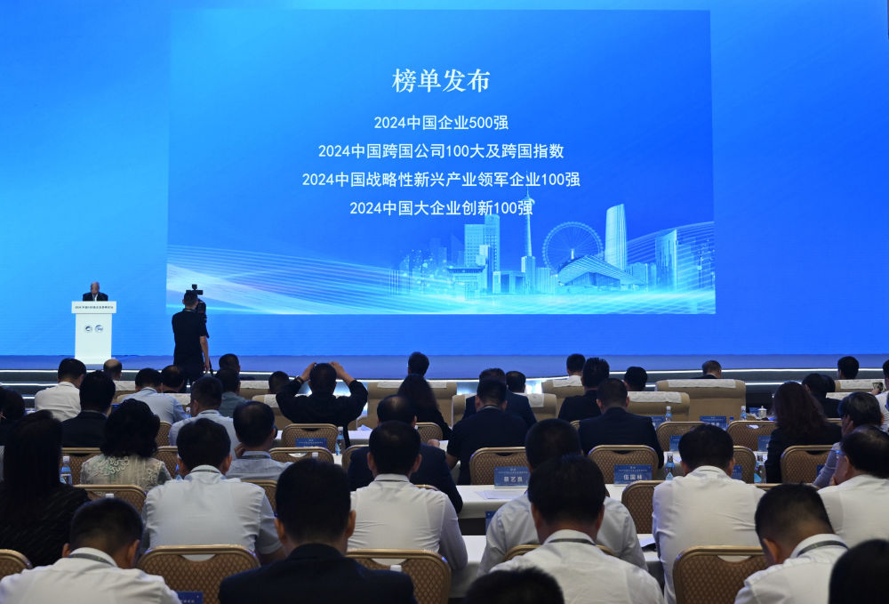 9月11日,在天津举行的2024中国500强企业高峰论坛上,受邀嘉宾公布“2024中国企业500强”名单。新华社记者 孙凡越 摄