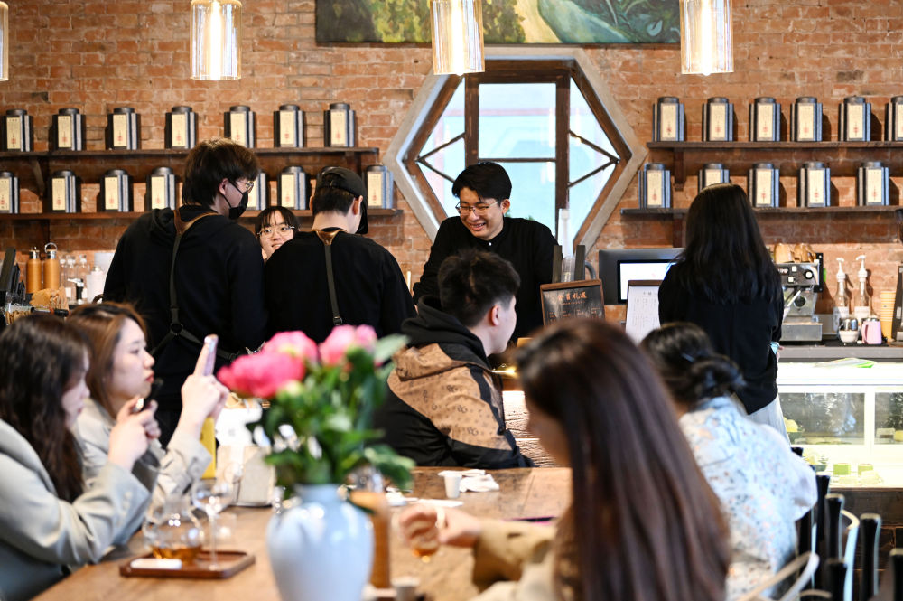 在天津市和平区五大道,一家茶饮店内顾客络绎不绝。新华社记者 李然 摄