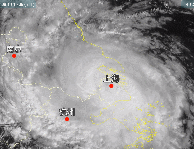 9月16日中午12时,台风“贝碧嘉”中心已位于苏州昆山了,下一站无锡。