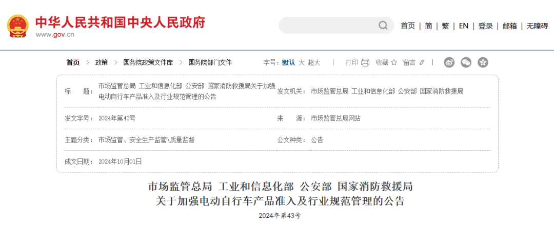 《关于加强电动自行车产品准入