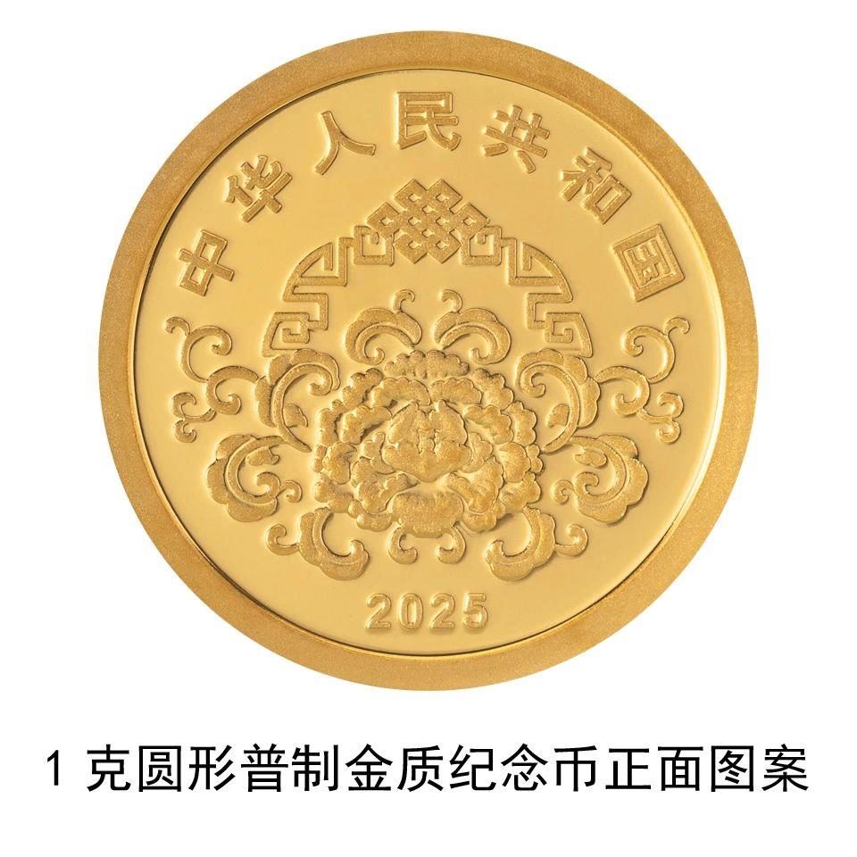 双色铜合金纪念币正面图案为“中国人民银行”“10元”字样,汉语拼音字母“SHIYUAN”及年号“2025”,底纹衬以团花图案。