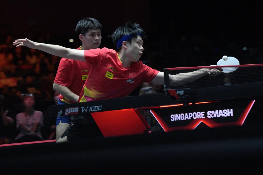 王楚钦/林诗栋在男双决赛中以11:2、11:4、13:11击败中国台北队组合林昀儒/高承睿,首次搭档参加WTT赛事便取得冠军。
