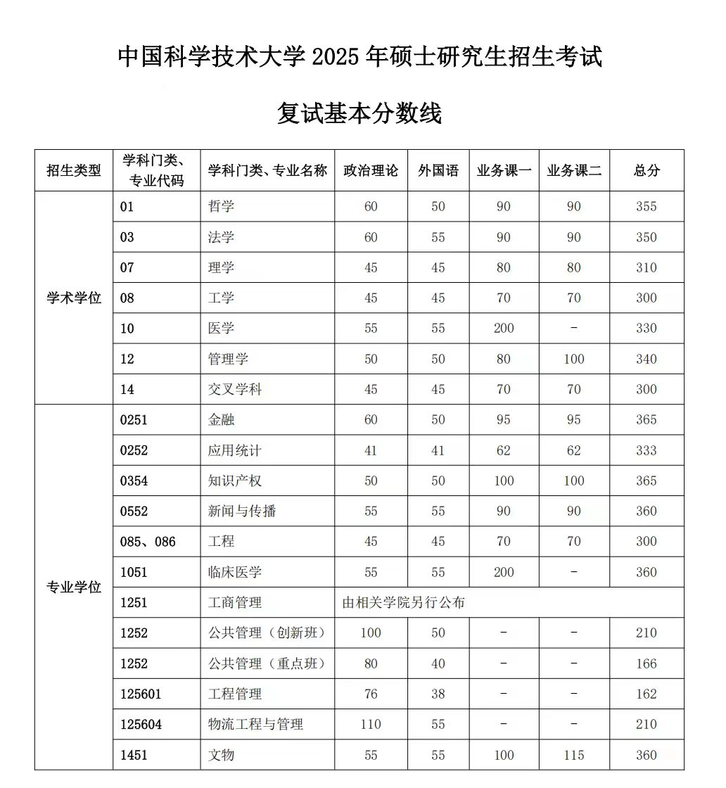 经学校研究生招生工作领导小组审议批准,现将我校2025年硕士研究生招生考试考生进入复试的初试成绩基本要求和有关说明公布如下:
