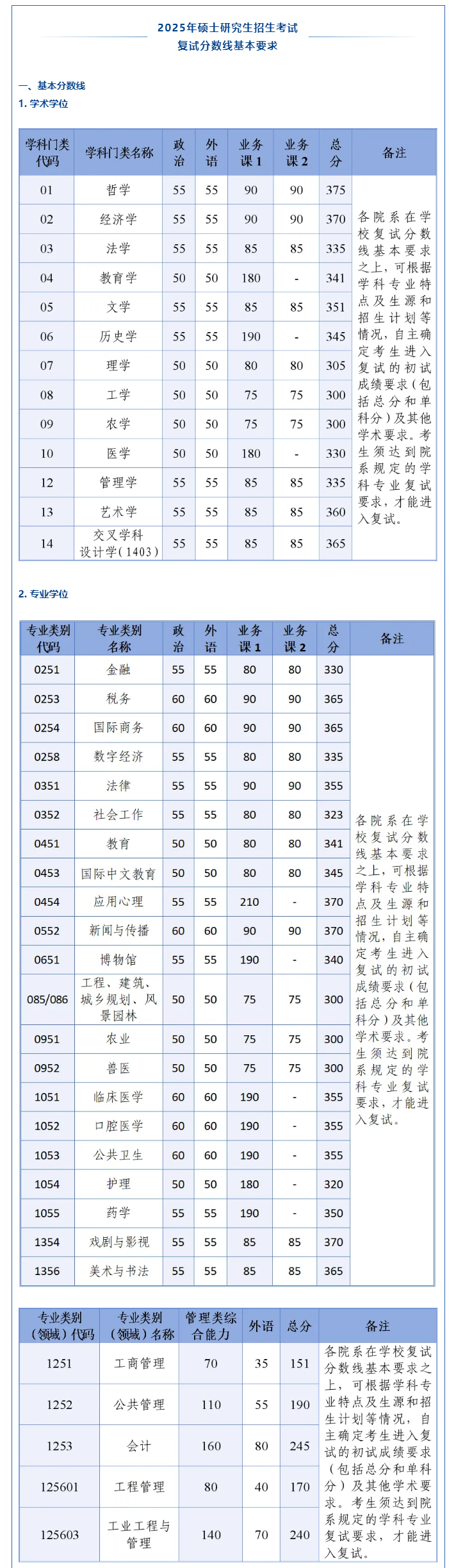 01学校复试基本分数线(学术学位类)